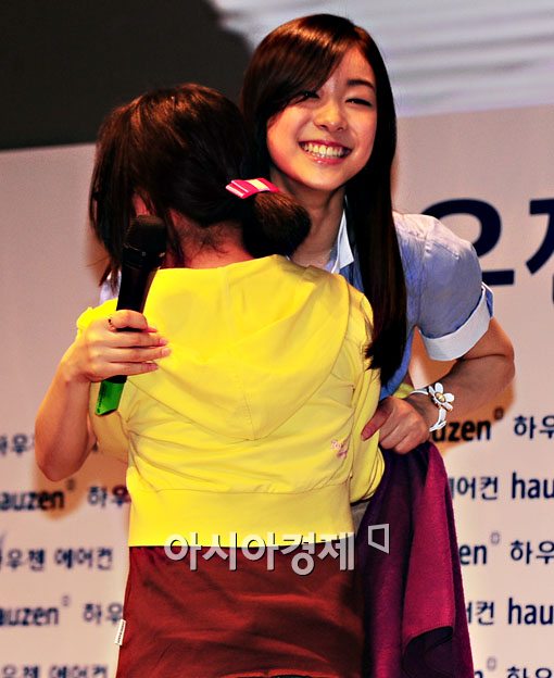 피겨 스타 김연아 선수가 29일 서울 서초구 서초동 삼성그룹에서 열린 '김연아, 그 두번째 바람이 붑니다'라는 하우젠 쇼케이스에 출연해 팬들과 만남의 시간을 갖고 있다.