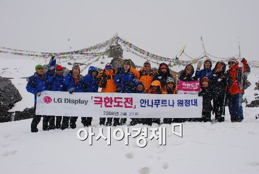 한편, LG디스플레이 임직원들은 지난해 3월에도 세계정상 도약을 위한 '극한도전 프로젝트'의 일환으로 특수장비 없이 올라갈 수 있는 최대 높이인 안나푸르나 베이스캠프 4130m 등반에 성공한 바 있다.