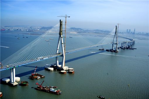얼마 전 마지막 상판 설치가 모두 끝나 다리 위에는 공사차량이 수시로 드나든다. 이곳에서는 도로포장과 난간 공사 등을 앞두고 마무리 작업을 하고 있는 인부들의 손놀림이 바쁘다.