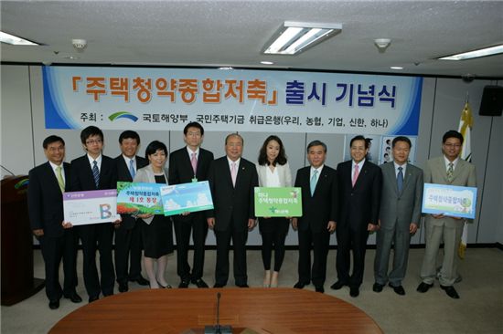 전달식에는 주택기금취급 5개 은행 중 우리은행 이종휘 행장, 기업은행 조준희 전무 등이 참석, 각각 1호 통장 및 기념품을 전달했다.