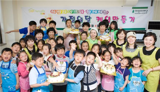 한국허벌라이프(대표 정영희)는 6일 어린이재단과 함께 서울 마천종합사회복지관에서 결식 아동들을 위한 '웰빙케익 만들기' 봉사 활동을 진행했다고 7일 밝혔다.