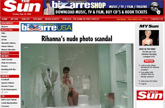 영국 타블로이드 '더 선' 온라인판은 9일(현지시간) 리한나가 직접 찍은 것으로 추정되는 누드 사진 6장이 유출됐다고 보도했다.