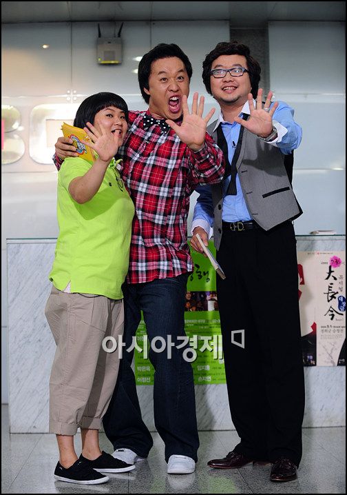 [아시아경제신문 박성기 기자]11일 오전 10시 서울 여의도 MBC에서 진행된 MBC Every1 '식신원정대' 기자간담회에서 개그맨 김신영, 정준하, 박휘순이 함께 파이팅하는 포즈를 취하고 있다.
