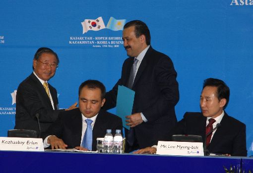 조석래 전국경제인연합회 회장 등 이명박 대통령 카자흐스탄 수행 경제사절단은 12~13일 이틀간 카자흐스탄에서 이러닝(e-learning) 구축, 오일탱커 건조, 조선소·철도 건설과 일반건설 사업에 참여하는 양해각서(MOU)를 체결하는 성과를 거뒀다.