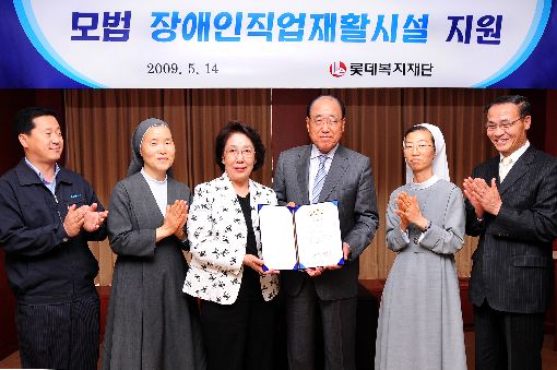 롯데복지재단은 장애인들의 자립 능력을 높이기 위해 장애인직업재활시설에 생산기기를 지속적으로 지원해 오고 있다.