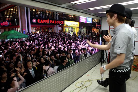 [아시아경제신문 강승훈 기자] 샤이니의 로즈데이 게릴라 이벤트 '로미오, 줄리엣을 만나다'가 시민들의 폭발적인 반응을 얻었다.
