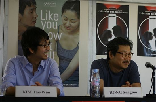 [칸(프랑스)=아시아경제신문 고경석 기자]영화 '잘 알지도 못하면서'로 62회 칸국제영화제 감독주간에 초청된 홍상수 감독과 주연배우 김태우가 16일 오전 11시께(현지시간) 칸 크루아제극장 인근에 마련된 기자회견에 참석해 관객들과 대화를 나눴다.
