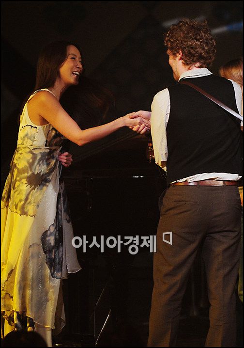[아시아경제신문 박성기 기자]16일 오후 8시 서울 등촌동 SBS공개홀에서 진행된 '김정은의 초콜릿'에서 영화 '원스'로 이름을 알린 아일랜드 그룹 스웰시즌이 출연, 김정은과 악수를 나누고 있다.