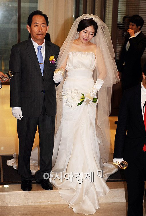 [아시아경제신문 이기범 기자]17일 오전 서울 역삼동 오나르 바이 오스티엄에서 화촉을 밝히는 배우 황효은이 아버지의 손을 잡고 입장하고 있다.