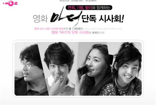 LG텔레콤(대표 정일재)은 모바일 인터넷 서비스 오즈(OZ)의 광고 모델인 김범, 김기범, 이연희 그리고 봉준호 감독과 함께 영화 '마더'의 특별 시사회를 오는 27일에 개최한다.