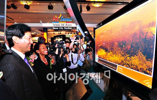 오세훈 서울시장과 안나 티바이쥬카 UN Habitat의장등 주요 인사들이 전시장을 둘려보고 있다.