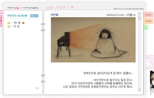 [아시아경제신문 강승훈 기자] 최근 세븐과 찍은 사진이 공개되면서 당혹함을 감추지 못했던 박한별이 미니홈피를 통해 심경 고백을 했다.