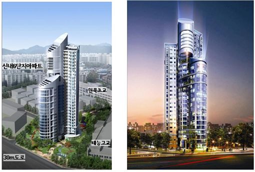 서울 중랑구 묵동 사회체육시설용지에 독특한 디자인의 장기전세주택(시프트)이 들어선다.