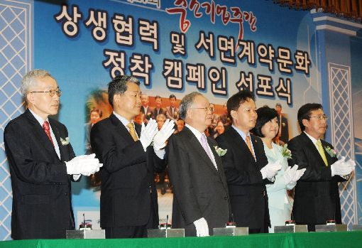 전경련 등 3개 단체는 이날 선포식에서 경제위기 극복과 경제의 재도약을 위해 대ㆍ중소기업이 협력해 서로의 경쟁력을 강화해야 한다는데 의견을 모으고, '상생협력 및 서면계약문화의 정착과 확산을 위한 공동 선언문'을 발표했다.