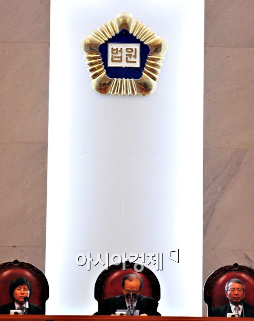 이용훈 대법관이 21일 서울 서초구 대법원 대법정에서 존엄사를 인정하는 확정판결문을 읽고 있다.