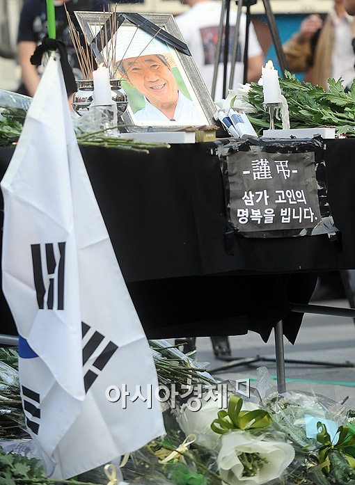 [아시아경제신문 이기범 기자]23일 오전 노무현 전 대통령이 서거한 가운데 이날 오후 서울 덕수궁 대한문 앞에 고인의 분향소가 마련돼 있다.