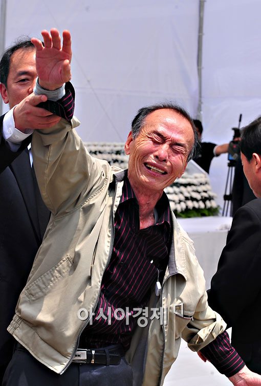 노무현 전 대통령 서거 2일째를 맞이한 24일 경남 김해 봉하마을에 마련된 빈소를 찾은 한 조문객이 통곡을 하고 있다.