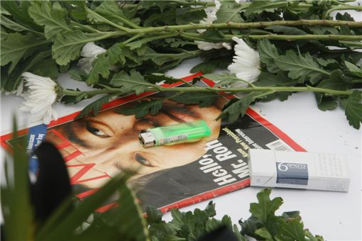 $pos="C";$title="";$txt="";$size="510,340,0";$no="2009052416505985575_1.jpg";@include $libDir . "/image_check.php";?>노무현 전 대통령 서거 2일째를 맞이한 24일 경남 김해 봉하마을에 마련된 빈소에 노무현 전 대통령이 사진이 실린 잡지 위에 담배가 올려져 있다./<사진공동취재단>