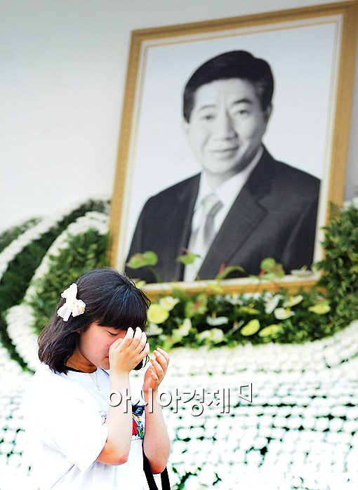[아시아경제신문 이기범 기자]25일 오후 서울역 광장에 마련된 노무현 전 대통령 공식분향소를 찾은 한 어린 아이가 조문을 마치고 슬퍼하고 있다.