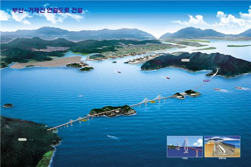 거제도는 대우조선해양, 삼성중공업 등 세계적인 조선업의 중심지로 부산과의 물동량은 계속 증가하는 추세다. 침매터널 구간과 사장교로 이뤄진 거가대교가 완공되면 부산∼거제간 통행시간은 3시간40분에서 40분으로 5분의 1 가량 단축된다.