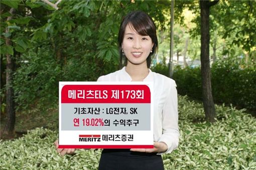 메리츠ELS 제173회는 LG전자와 SK를 기초자산으로 연 19.02%의 수익률을 추구하는 만기 2년의 원금비보장형 주가연계증권이다. 4개월 예정된 조기상환 평가일에 기초자산의 종가가 모두 최초기준주가의 90%(4·8개월), 85%(12·16개월), 80%(20·24개월(만기)) 이상인 경우 연 19.02%의 수익률로 조기상환된다.