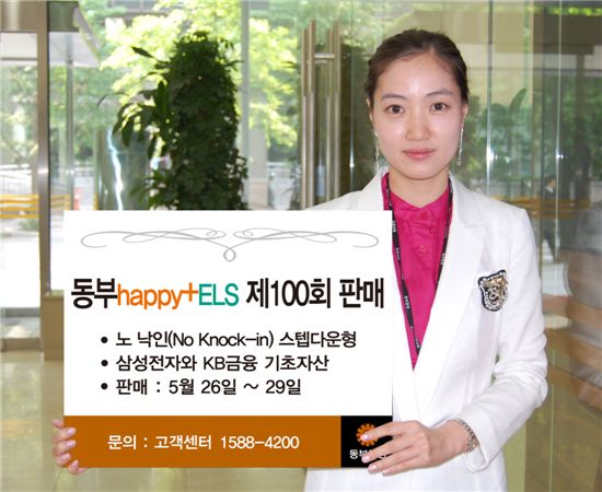 동부증권은 파생결합증권(ELS) 100회 발행을 기념, 29일까지 나흘간 노 낙인(No Knock-in) 스텝다운형 ‘동부 happy+ ELS 제100회’를 판매한다고 26일 밝혔다.