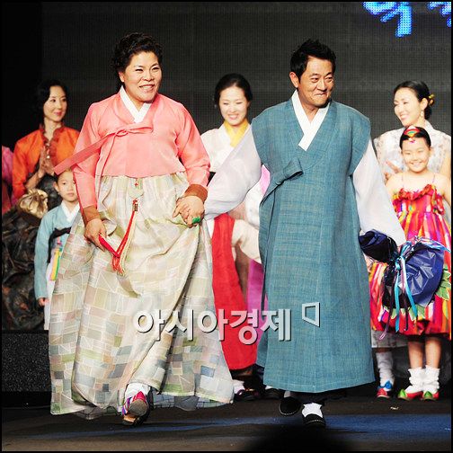 [아시아경제신문 박성기 기자]한복 디자이너 박술녀와 배우 박준규가 26일 오후 서울 한남동 그랜드 하얏트 호텔에서 열린 '퍼레이드 오브 네이션즈'(Parade of Nations) 패션쇼에서 당당한 워킹을 선보이고 있다.