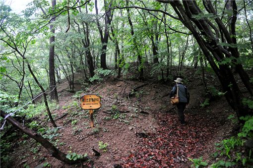 $pos="C";$title="";$txt="";$size="510,332,0";$no="2009052811300478646_5.jpg";@include $libDir . "/image_check.php";?>10여분 오르자 숲은 고요하다. 초록빛깔의 새옷을 갈아입고 비를 막아낸 나뭇잎들은 촉촉하다. 새생명을 뿜어내는 나무 줄기만 촘촘히 박힌 숲속은 태고적 적막감에 깊숙히 잠겨있다.