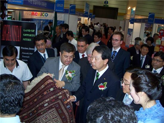 김완희 수입업협회 회장도 아프가니스탄부스를 방문해 "한국에 첫진출하는 아프가니스탄 카펫을 보니 매우 기쁘다. 아내에게 말해서 하나 구입해야겠다"며 이들을 환영했다.