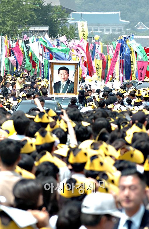 노무현 전 대통령의 영결식이 29일 경북궁에서 마친뒤 노 전 대통령의 운구행렬이 청와대를 등지고 지나가고 있다.