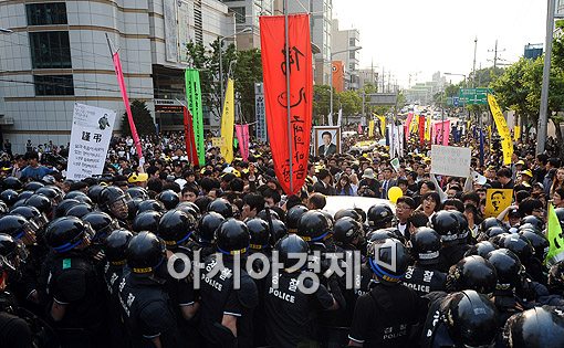 29일 오후 6시 현재 전투경찰대원들이 광화문 프레스센터 앞 도로를 에워싸고 통행을 차단하고 있으며 오후 3시 반쯤에는 이를 막으려는 시민들과 한 차례 충돌이 일어나기도 했다.
