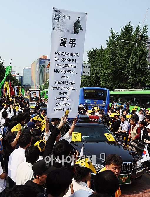 [아시아경제신문 이기범 기자]고 노무현 전 대통령의 운구차량이 29일 오후 서울역을 통과, 추모객들의 발걸음이 끊임없이 이어지고 있다.