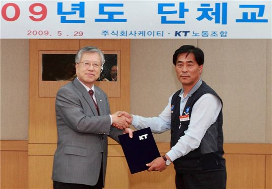 KT는 31일 노사가 오랜 협의 끝에 인재경영 전반에 걸친 인사 혁신 프로그램에 전면 합의했다고 밝혔다. 앞서 29일 KT노조는 '2009년 임금 및 단체협약 가협정'을 조합원 88.5%의 찬성으로 가결, 이날 저녁 정식 조인했다.