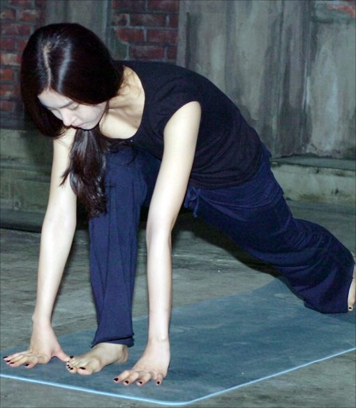 [아시아경제신문 윤태희 기자]배우 유진이 2일 오전 11시 경기도 남양주 종합 촬영소(양수리 1세트장)에서 열린 영화 '요가학원' 현장공개에서 요가 포즈를 취하고 있다.