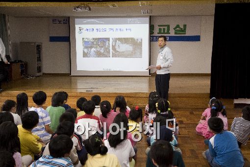 르노삼성자동차 환경지킴이 일일 강사가 초등학교 어린이들을 대상으로 강의를 하고 있다.