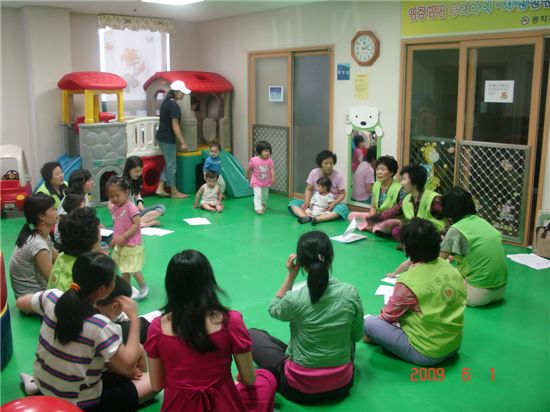 ▲부모역할 배우기▲엄마의 옹알이▲동화구연▲가베교육▲이중언어 배우기▲자유미술놀이 등을 통해 우리문화에 낮선 결혼 이주여성들이 양육에 필요한 기초지식을 습득하게 된다.