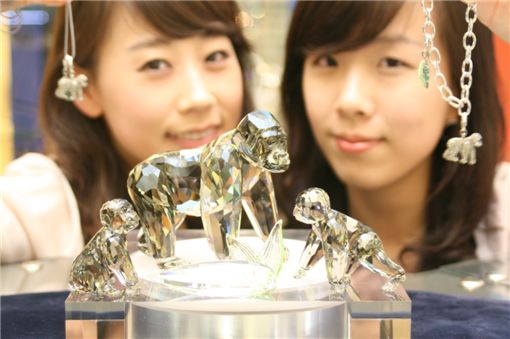 갤러리아백화점은 명품관WEST 스왈로브스키 매장에서 환경의 날인 5일 멸종위기에 처한 대표적 동물인 고릴라 악세서리를 선보였다.