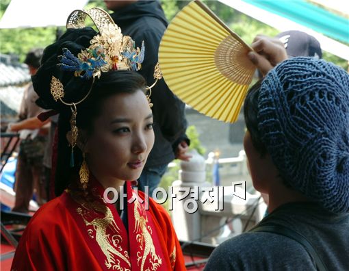 [아시아경제신문 윤태희 기자]배우 이인혜가 4일 오후 충북 단양군 한 세트장에서 진행된 KBS2 '천추태후' 촬영현장에서 휴식중 부채질을 받고 있다.