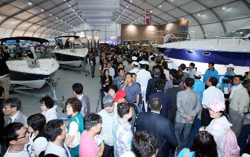 200만원 짜리 1인용 보트에서 60억원짜리 초화화 요트까지 전세계 유명 보트와 요트는 물론 의류와 장비 등 수상레포츠 관련 제품들을 전시해놓은 제1전시관은 몰려든 인파로 발딛을 틈이 없다. 줄을 서서 관람해야 정도다.