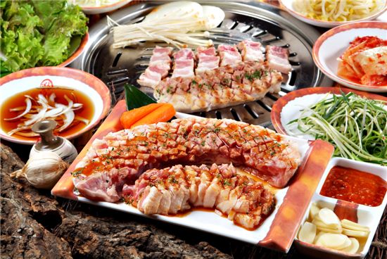 또 자체 개발한 소스로 숙성시켜 돼지고기 특유의 잡냄새를 없애고 숯불직화방식으로 고기의 맛을 더 살렸다. 칼집을 여러 번 낸 통스테이크 삼겹살을 각종 과일과 채소, 와인 등으로 숙성시키고 참숯으로 초벌구이를 해 기름기가 쏙 빠진 부드럽고 담백한 맛을 제공한다.
