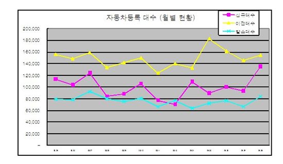 또한 이전 등록대수와 말소 등록대수도 각각 15만4231대(6%)와 8만3415대(26%) 증가했다. 이는 노후차 세제지원 요건에 신차의 신규등록일로부터 전후 2개월이내에 노후차를 말소등록(폐차시) 또는 이전등록(양도시) 해야 했기 때문인 것으로 국토부는 분석했다.