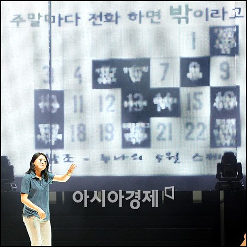 [아시아경제신문 박성기 기자] 6일 오후 6시 서울 마포 아트센터에서 진행된 2AM 첫 공식 팬미팅에서 한 팬이 자신의 일정을 소개하고 있다. 2AM은 조권, 임슬옹, 정진운, 이창민으로 구성된 4인조 남성 그룹이다.