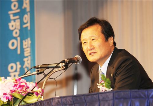 윤증현 기획재정부 장관이 8일 오전 부산 롯데호텔에서 열린 부산·울산·경남 지역 최고경영자(CEO) 대상 조찬 세미나를 통해 '경제위기 극복과 위기 이후 도약을 위한 과제'를 주제로 강연하고 있다.