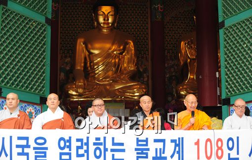 9일 오전 서울 종로구 조계사 대웅전앞에서 '현 시국을 염려하는 불교계 108인 시국선언'이 열렸다.