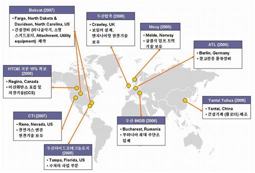 두산 관계자는 "2000년대 초반만해도 핵심 인재들은 두산 입사에 무관심했을 만큼 우리는 그저 신흥 경제국의 평범한 기업에 불과했다"면서 "다국적 기업과 대화를 통해 우리가 갖고 있는 유ㆍ무형 자산의 적정 가치를 설명하는 데에만 3년여의 시간을 보내야했다"고 설명했다.