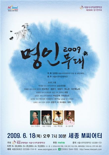 명인 명창이 출연하는 무대 '2009 명인무대'를 제299회 정기연주회로 선보인다.