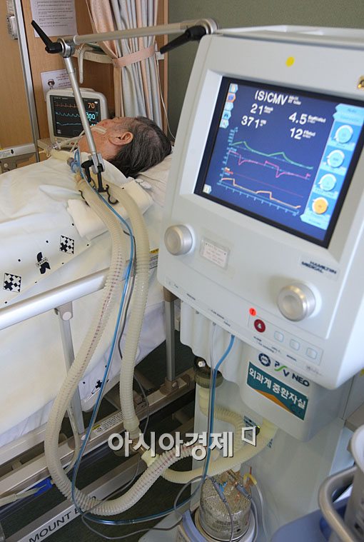 신촌 세브란스병원 입원실에서 김 모 할머니가 임종을 기다리고 있다.