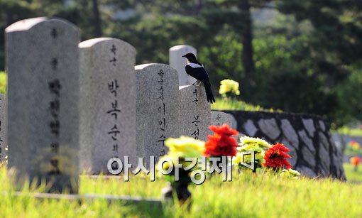 59년이라는 긴 세월이 지났지만 아직 그 상처는 가슴깊이 아픈 상처로 남아있다. 6.25전쟁 기념 이틀을 앞둔 23일 오후 서울 동작구 국립현충원을 찾는 이가 아무도 없어 쓸쓸한 적막감이 감도는 현충원을 까치 한마리가 외롭게 지키고 있다.