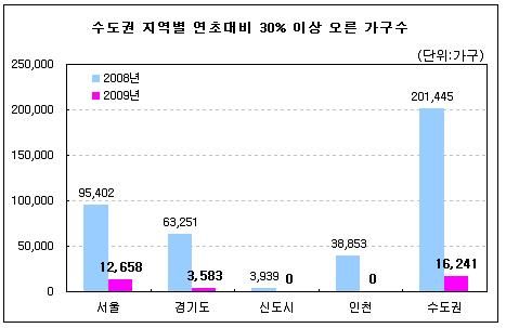 $pos="L";$title="";$txt="";$size="302,138,0";$no="2009062408280719374_3.jpg";@include $libDir . "/image_check.php";?>한편 지난해 상반기 집값이 30% 오른 곳은 전체의 68.6%가 노원구, 도봉구, 의정부시, 남양주시, 동두천시 등 서울 강북권, 경기 북부지역이었다. 더불어 중동, 일산 등 신도시가 3939가구, 인천은 계약구, 남동구 등 3만8853가구가 30% 이상 올랐다.