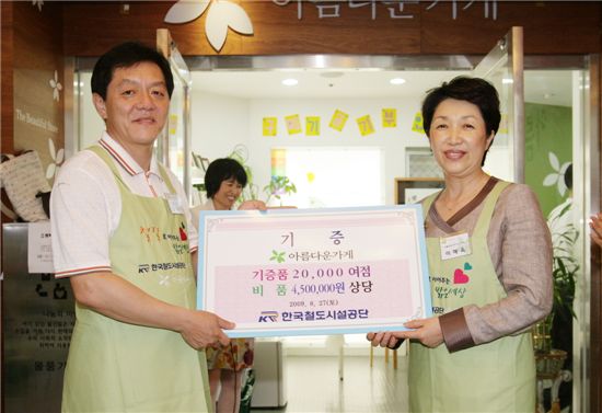 철도시설공단관계자는 “아름다운가게와 3년간 임·직원 및 가족 6000여명이 동참한 그늘진 계층 지원 바자회와 설맞이 ‘아름다운 나눔 보따리’ 행사 등으로 4000여만 원의 기금을 전했다”고 말했다.
